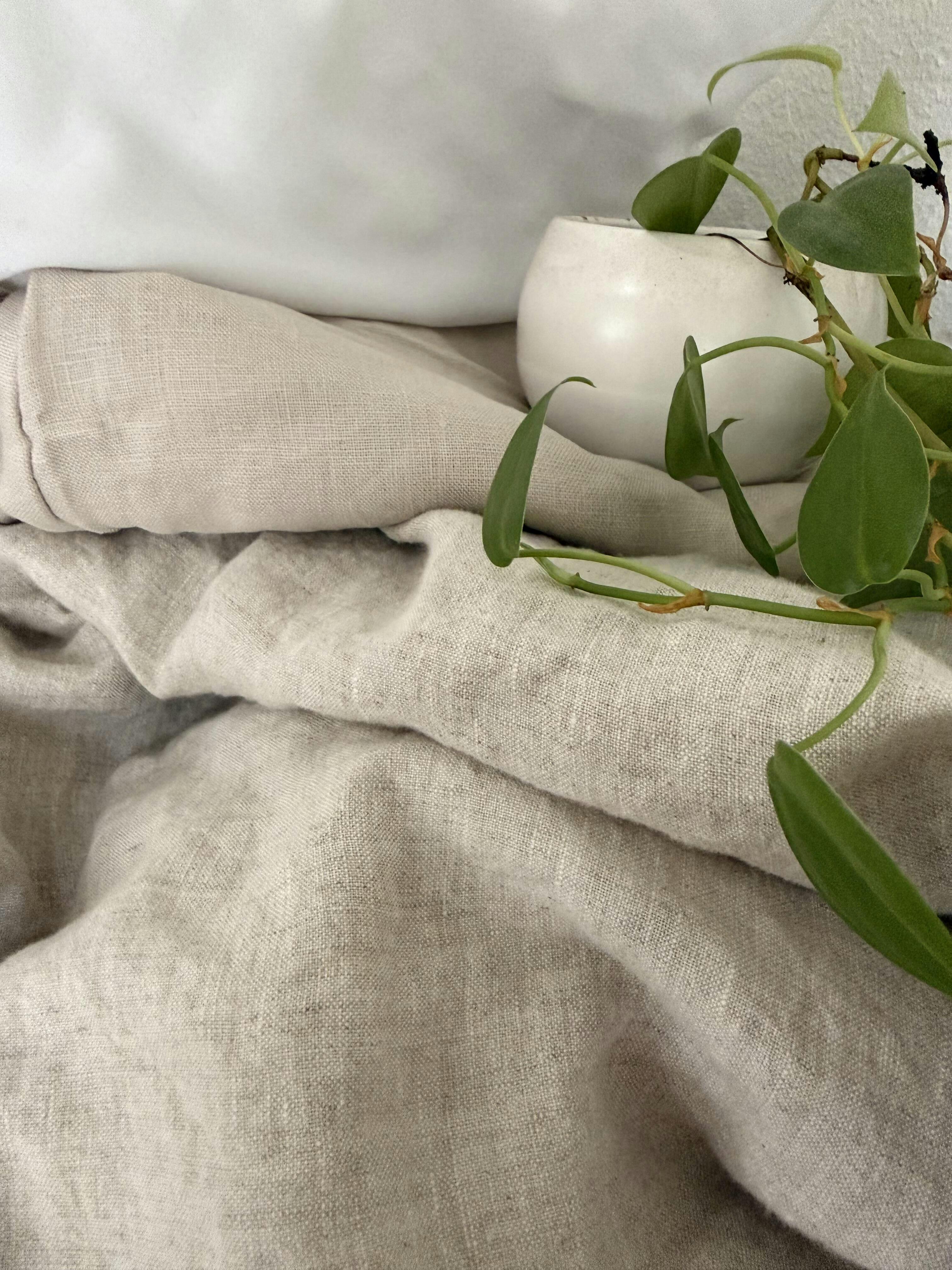 Good to know: You might notice some lint in the first couple of washes—totally normal for natural linen! This will settle down quickly. If this is your first time with linen bedding, the texture may feel a little different at first, but like your favorite jeans fresh out of the wash, it will soften beautifully in no time.